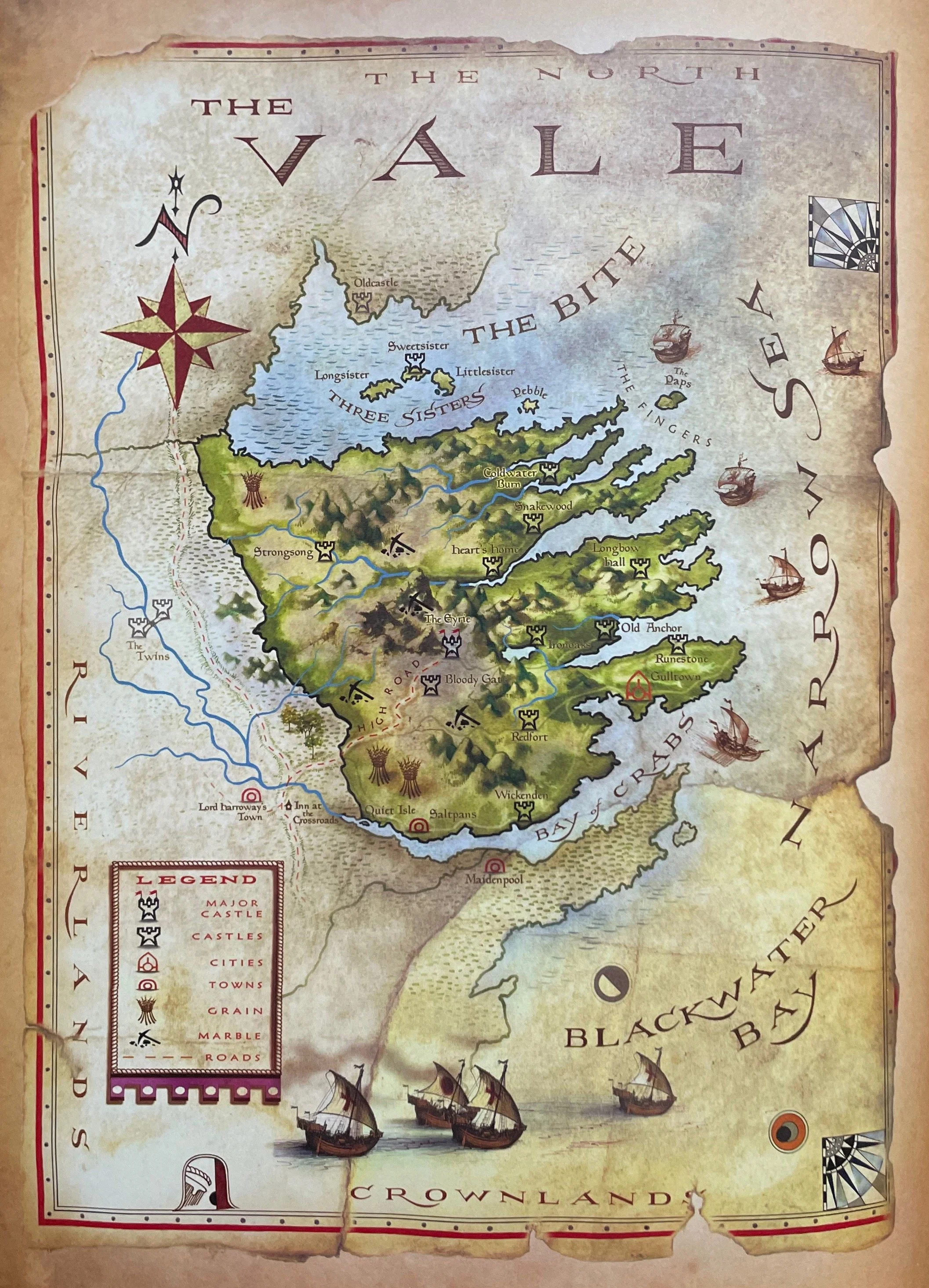 A windswept land of seagulls and sheep shit to the east and a fertile valley nestled at the foot of the Giant’s Lance make up the Vale. A land separated from the rest of Westeros by the Mountains of the Moon, it strong natural defenses against invaders of kingdoms old and new.